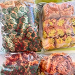 Over the years, I’ve tried a lot of containers and storage systems, but the simplest option I’ve found for the majority of things for the lunchbox freezer stash is also the cheapest: Ziplock bags. Big ones. They’re inexpensive, easy to source, and great for storing multiple portions together. I use large, sturdy ones from IKEA, but any decent quality bags will work.